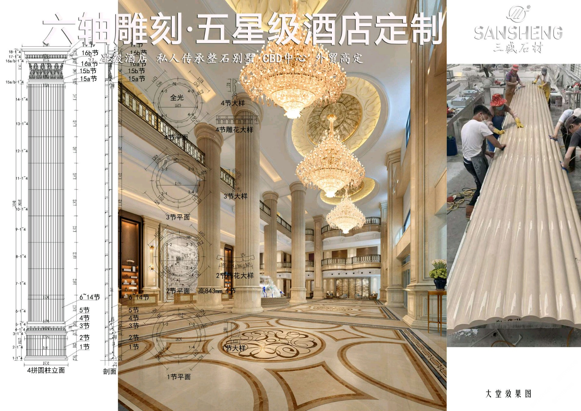 發(fā)布信息: 聯(lián)系:13489555666 黃 三盛集團(tuán)丨三盛圓柱主營(yíng):魚(yú)肚白、中花白、雅士白、大花白、卡拉拉白、雪花白、南斯拉夫白、細(xì)花白、爵士白品種的圓柱、弧形板、羅馬柱、雕刻、線條、旋轉(zhuǎn)樓梯、吧臺(tái)水景沙盤(pán)、整棟傳承大厝、別墅,來(lái)料智能掃描加工。
