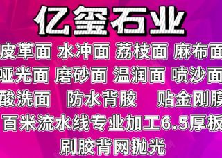 億璽皮革面麻布面荔枝面高壓水沖掃描貼膜背膠主營產品:白沙(荔枝面),白沙(溫潤面),保加利亞(皮革面),黑白根(皮革面),印度黑(皮革面),貝金米黃(溫潤面),白沙(磨砂面),水晶白(荔枝面),犀?;遥ㄆじ锩妫?太古黑金(皮革面),太古黑金(絲綢面),葡萄牙米黃荔枝面(水磨石),蒙古黑(火燒水洗面),灰木紋(噴砂面),阿爾卑斯金(拉絲面),阿爾卑斯金(瀑布面),鉑金鉆(皮革面),越南黑水沖面,印度黑(水沖面),黑金鉆(水沖面),山水木紋綠(水沖面),玄武黑(水沖面),宇宙黑,黑金沙,安哥拉黑,墨玉,津巴布韋黑,古馳黑,鏡湖春曉,安哥拉黑(麻布面),蒙古黑,吳哥鉆(水沖面),黑金鉆(澳洲水沖面),玄武黑(皮革面),灰洞石(國產),碧潭金沙,宇宙黑(花崗巖),月光灰,金摩卡(溫潤面),白金摩卡(荔枝面),浣溪沙,太古黑金,庫班綠,流沙棕,寶格麗黑(巴西),星河金,浪淘沙,普拉達綠,帝諾米黃,河流白(花崗巖)企業(yè)地址:福建泉州南安市水頭鎮(zhèn)曾莊村匯恒C5